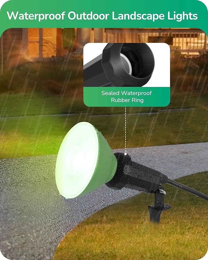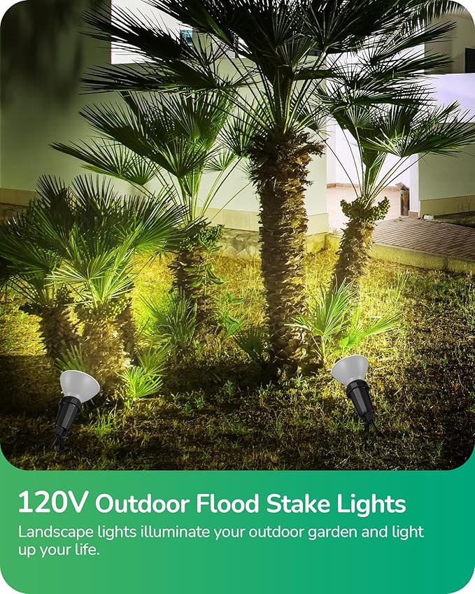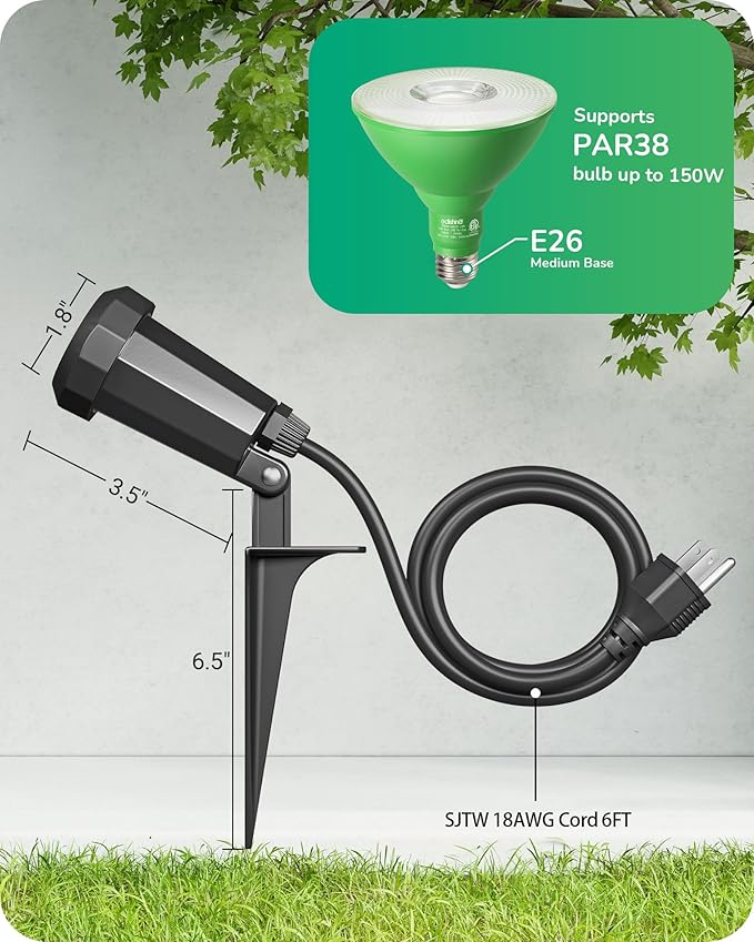 - [Easy to Install] Simply use the screw and nut cap to attach the ground stake, and then place your bulb into the socket; very easy to tweak the direction of the spot lights outdoor plug in by adjusting the screw, meet your various lighting needs