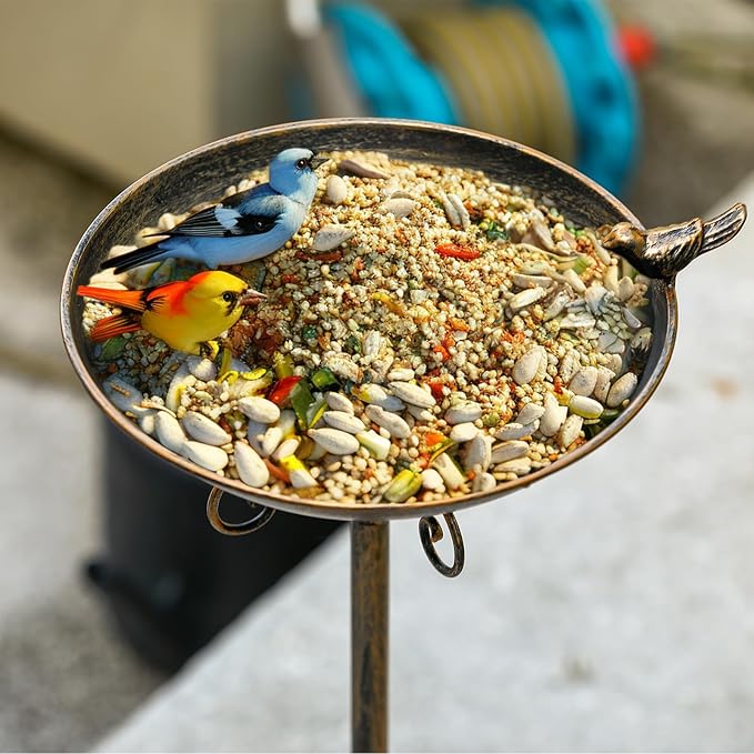 - 🦜The rim design of the cast iron bird attracts more feathered friends to feed or shower, Bringing The Bird Theme To The Forefront. It will add a great decoration to your garden.