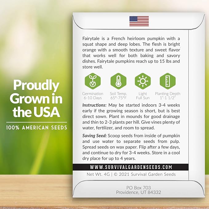 Survival Garden Seeds - Fairy Tale Pumpkin Seed for Planting - 2 Packs with Instructions to Plant and Grow Pumpkins in Your Home Vegetable Garden - Non-GMO Heirloom Variety
