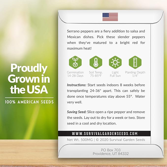 - The Info You Need to Grow - The Serrano seeds for planting outdoor are packed in a beautiful paper packet with instructions for successful growing and germination in your home garden. Each package also has instructions for saving seeds after harvest. Getting started is simple for both beginner and experienced gardeners.