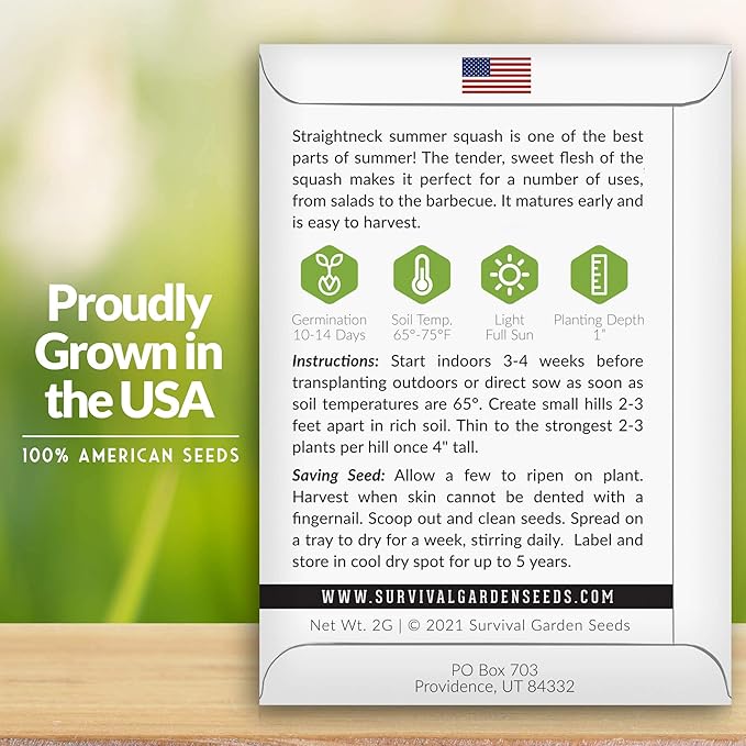 Survival Garden Seeds - Straightneck Summer Squash Seed for Planting - 2 Packs with Instructions to Plant and Grow Yellow Squash in Your Home Vegetable Garden - Non-GMO Heirloom Variety - Seed Vault