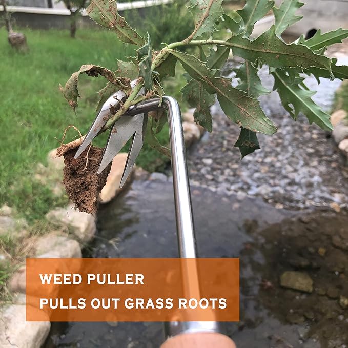 SHANFEEK Weed Puller with M-Shape Claw Weeding Artifact Uprooting Weeding Tool Dandelion Puller Tool Gardening Hand Tools Weed Remover Tool for Yard with Hard Solid Wood Handle(M-Type)