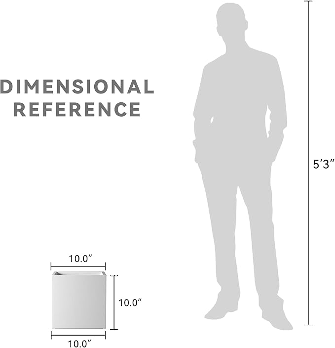 Kante 10 Inch Square Concrete Planter for Outdoor Indoor Home Patio Garden, Large Plant Pot with Drainage Hole and Rubber Plug, Pure White