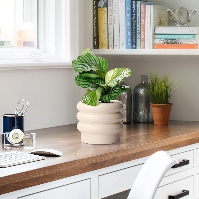 - Spruce Your Home Up: Our indoor plant pot is comprised of stacked layers like doughnuts, the stacked circle shape of this curved planter makes for an eye-catching art-deco style. Match your home decoration such as modern,contemporary,minimalist,mid century,bohemian,shabby chic style, etc.