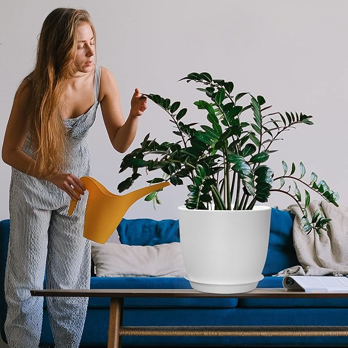 WOUSIWER Plant Pots 10/9/8 inch, Set of 3 Modern Decorative Plastic Planters with Drainage Holes and Saucers for House Plants Indoor Flowers Plants, White