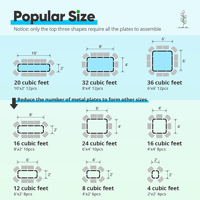 - 【DIY Configuration】The metal garden bed can be assembled into different configuration, you can use all the metal plates or use less metal plates to form different sizes. It's perfect for you to change sizes according to your places and numbers of plants, good for decorating your garden.