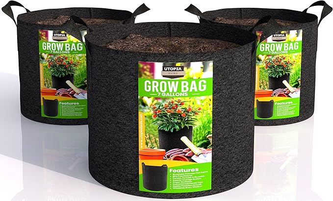 Utopia Home 3-Pack 7 Gallon Fabric Grow Bags, Heavy Duty Thickened Fabric Planters Pots, Aeration Fabric Pots with Handles, Nonwoven Fabric Bags Suitable for Vegetables Flowers Mushroom (Black)