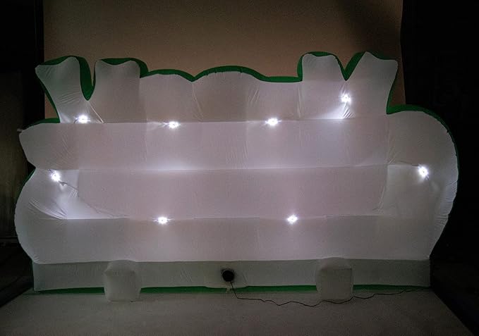 - INCLUDES: The Merry Christmas Inflatable Decoration Lawn Sign includes a drawstring storage bag and is white with red lettering and green holly leaves. It includes an electrical fan blower that inflates in seconds, UL adaptor, lawn stakes and tether ropes, weighted base for freestanding indoors, LED lights for bright light ups at night, and can be used indoors or outdoors. Built-In LED light strand rated to last 80,000 -100,000 hours of continuous use.