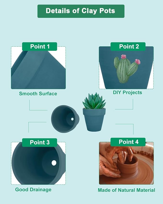 - 【Multi-usages】The cute terra cotta pots are perfect for plants nursing, ornament for room or balcony, wedding, baby shower, and other party decoration, crafts creation and more. Suitable for school projects of teaching children about growing plants.