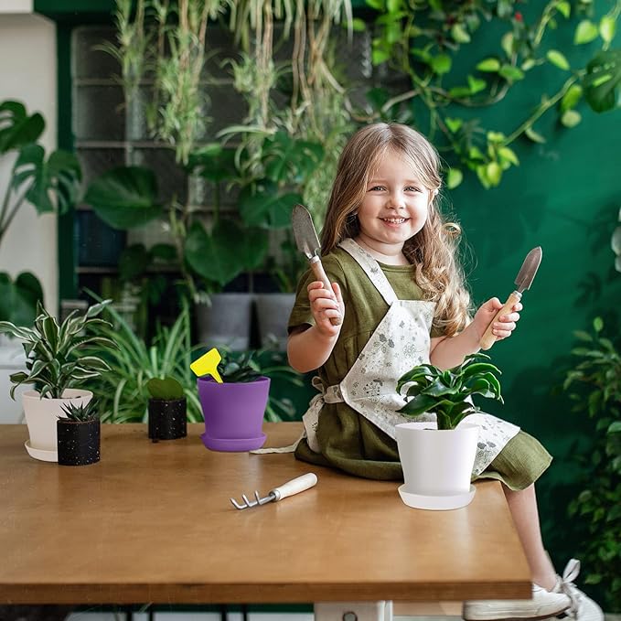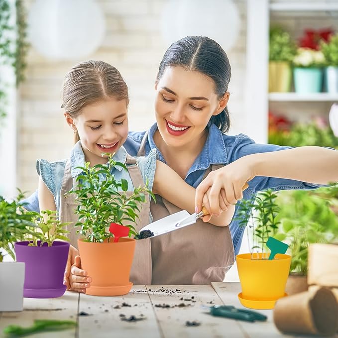 16 Pack 5.5 Inch Plastic Planters Assorted Flower Plant Pots Seedling Nursery Pots with Tray, Outdoor Indoor Plants for Seedling, Transplanting, Cutting, 8 Colors