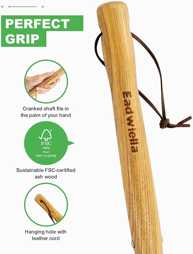 - COMFORTABLE HANDLE - The ergonomically designed hardwood handle provides a comfortable grip, reducing hand stress and tension. Hole on the handle allows hanging display and storage.