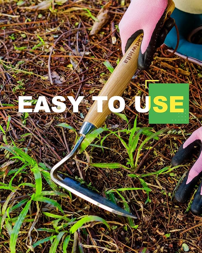 - UNRIVALED QUALITY - This hand hoe is hand-forged from stainless steel and fitted with ash hardwood handle for long lasting sharpness and durability. Short, compact, it can be easily stored in any tool bag, shed or garage.