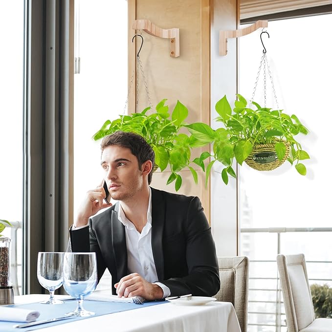 - Natural Raw Wood & Gold Metal Hook - Made of premium natural wood material and shiny gold metal hook, plant hanger indoor is of very solid construction, and not easy to break or deform, the plant hooks are sold in pairs and look fabulous for indoor and outdoor use. Wall planters for indoor plants are able to withstand very windy and rainy weather, you could stain or paint them if desired