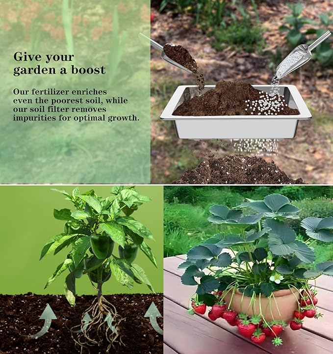 - 1;[Dirt sifter What’s included] You will receive 2-piece soil sifter set,including 1 main frame and 2 interchangeable filter screens. Each screen size is designed to fit the needs of your different gardening projects.