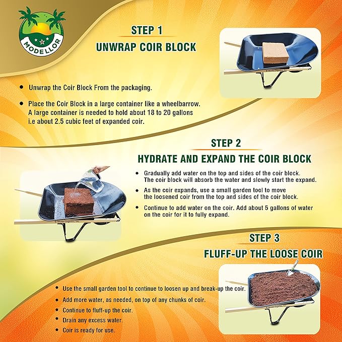 - ENJOY GARDENING – GROW LIKE A PRO! – Modellor Coir is light, fluffy and easy to handle. Coir helps with water retention, aeration, drainage and helps with strong root growth. Mix with various soil mixes or your favorite nutrients. This is the Best Growing Medium. See your plants grow and have fun.