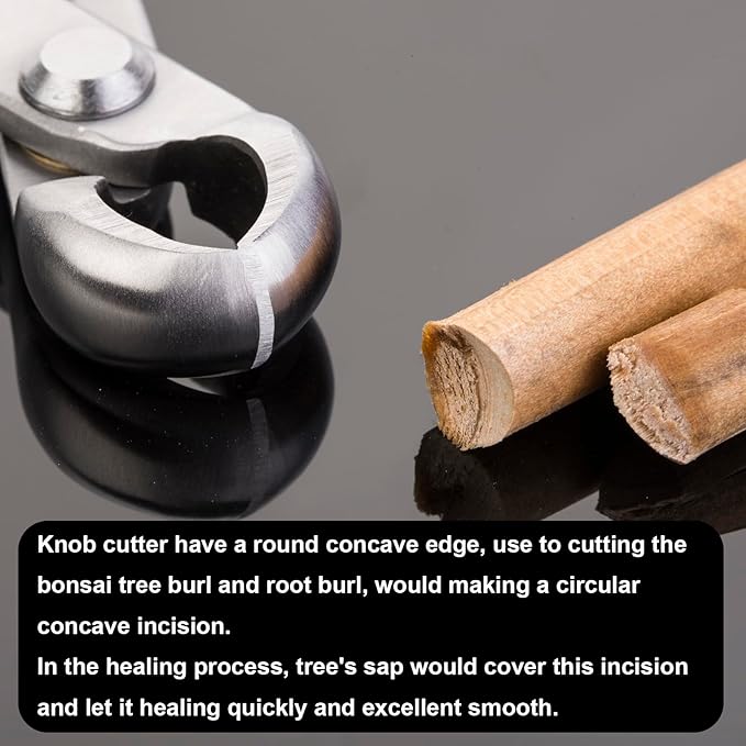 - Function Detail: this knob cutter, have a round concave edge, use to cutting the bonsai tree burl and root burl, would making a circular concave incision. in the healing process, tree's sap would cover this incision and let it healing quickly and excellent smooth.