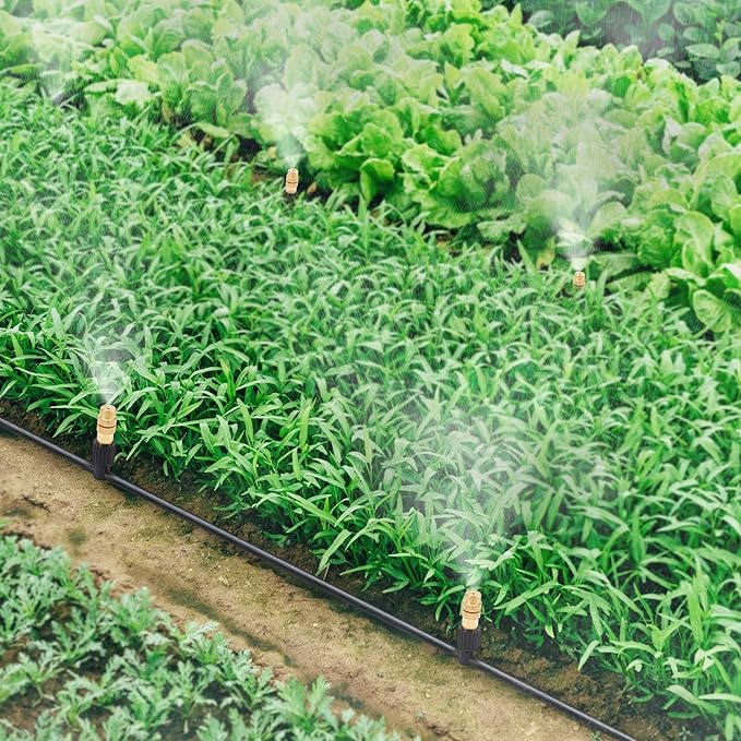 - 【Wide Application】: These adjustable spray misting nozzles with Drip Irrigation Connector can be connected to most 1/4 inch irrigation tubing and widely used for agricultural production, lawns, home gardening, terraces, patio, roof cooling, balcony cooling, plant watering, greenhouse vegetable and humidification ,irrigation etc..