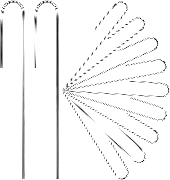 - Easy to Install: the long side of the ground stakes is about 5 inches, and the short side is about 2 inches, different lengths and 1 long prong make these landscape staples easy to use; Stick the drip hose staples in the drip tubing and push them into the soil