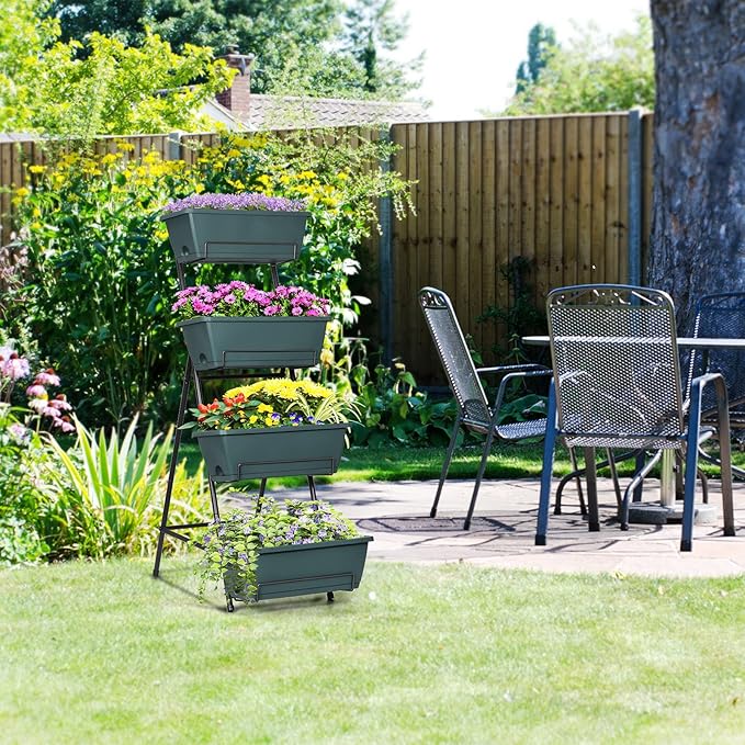 Tuenort Vertical Raised Garden Bed 4 Tiers Planter Box Freestanding Garden Planter with 4 Container Boxes for Growing Vegetables Herbs Flowers on Patio Balcony Green