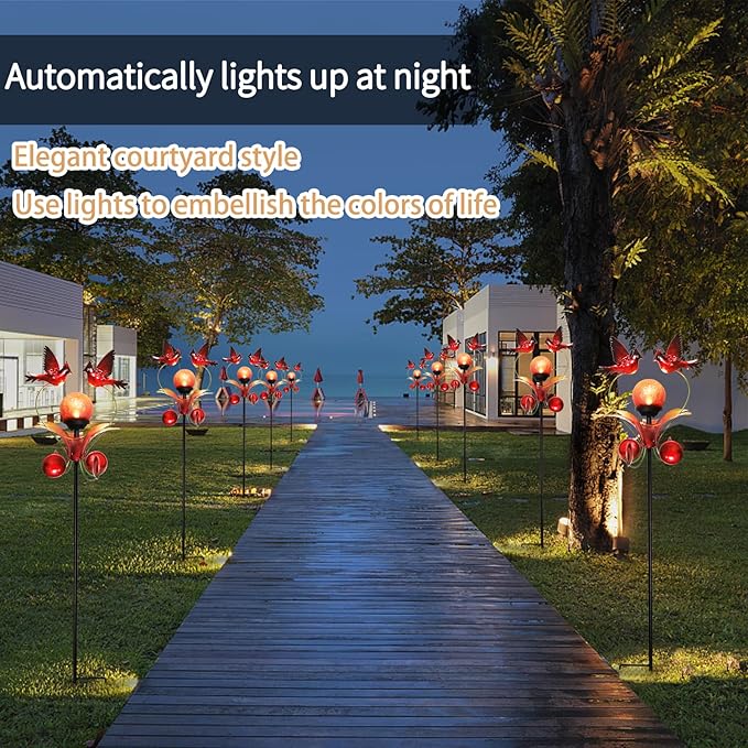 - Easy to Install - Simple assembly structure without extra screws, wiring or external electricity required. Just stick the cardinal garden stake into the soil, turn it on using the solar panel's power button, then enjoy your garden ornament as it softly glows automatically from dusk.