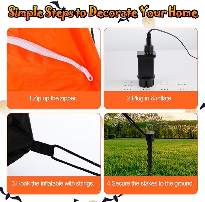 - 🎃 【Weatherproof & Durable Use】Crafted from IP44 waterproof and weather-resistant fabric, designed for outdoor use, always maintain its vibrant appearance. After the celebrations, they can be deflated quickly by unzipping and stored in the storage bag for next year's festivities.