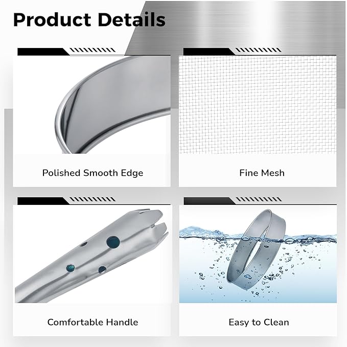 - 【Reliable Quality & Easy Clean】Made of stainless steel, our sieve sifter tools are built to last and are easy to clean. They resist rust, corrosion, and soil acidity or alkalinity, making them suitable for long-term use. The reinforced edges of the sieve frame ensure stability and durability, even when handling heavy loads of soil up to 4.4 lbs