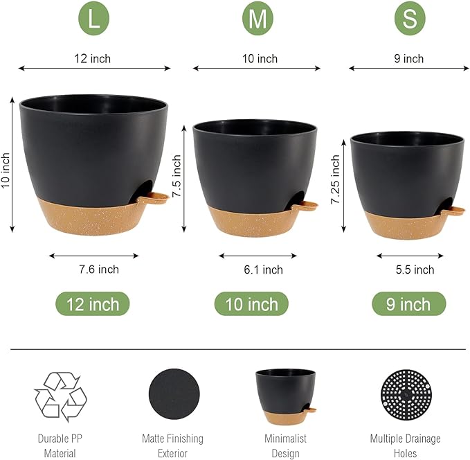 - Self-Watering Pots: Combines 3 sizes (12/10/9 inch) for repotting and growing large indoor/outdoor plants