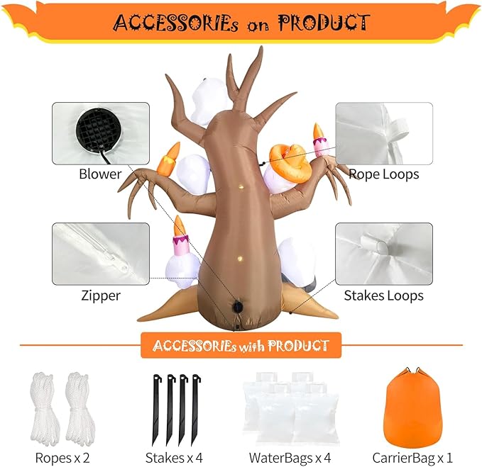 - Durable and Easy-to-Use Design: Crafted with high-quality materials, this Halloween Tree inflatable is designed to withstand outdoor conditions and last throughout the holiday season. Setting up the decoration is a breeze with the included inflation pump. Once the festivities are over, deflate and store it conveniently until next year's Halloween extravaganza.