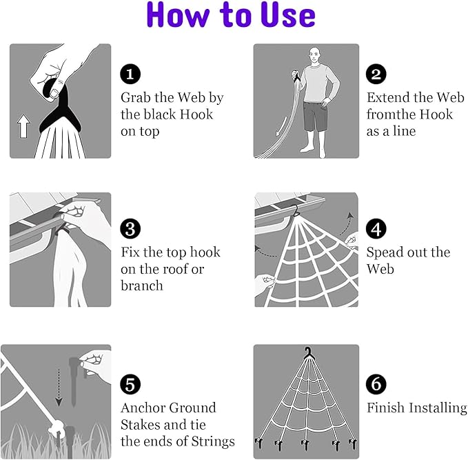 - 💀【Plug Powered & WATERPROOF DESIGN】💀: Our spider web are powered by plug, and is designed with a waterproof battery box, so you can display them in your yard and garden without worrying about rainy weathers,Both the purple spider web lights and battery box are waterproof, suitable for indoor and outdoor use.