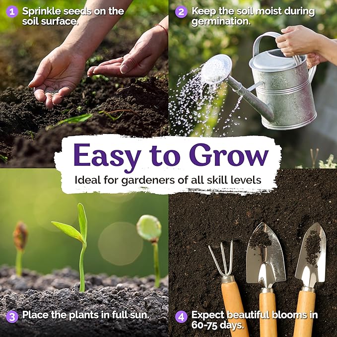 - Vibrant Blooms: Enjoy red, orange, yellow, pink, white, and purple flowers all summer. These ground cover seeds easily spread 1–2 ft wide, beautifying borders or containers.