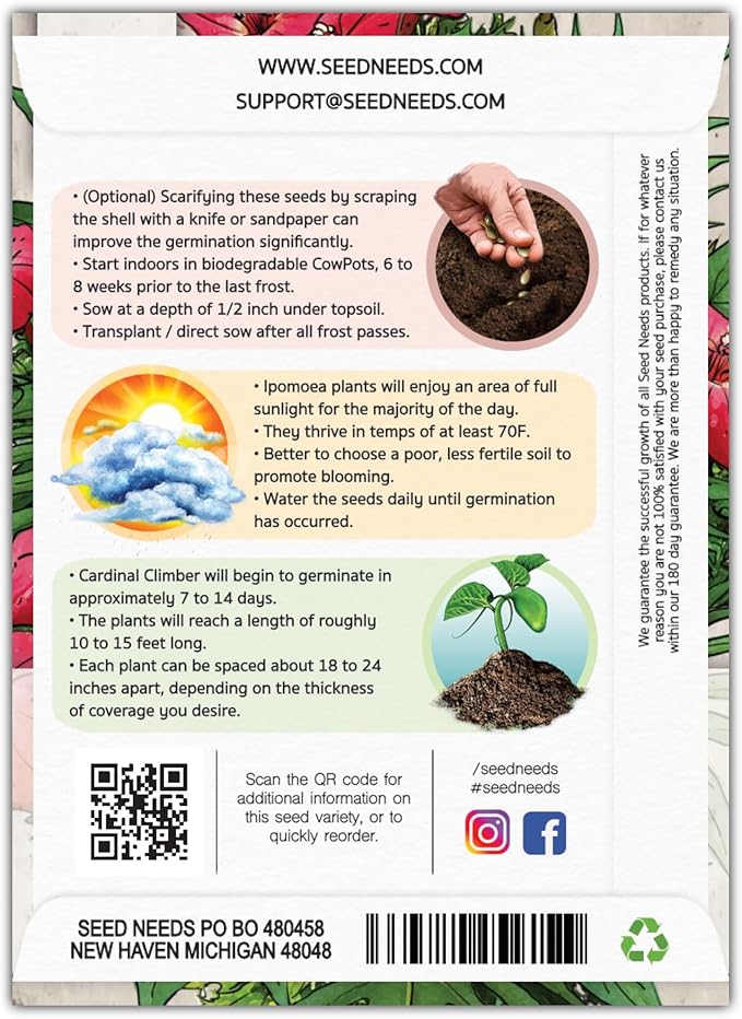 - Quality - All Cardinal Climber seeds packaged by Seed Needs are intended for the current and the following growing seasons. All seeds are stored in a temperature controlled facility that is free of significant amounts of moisture.