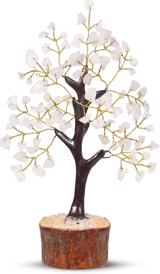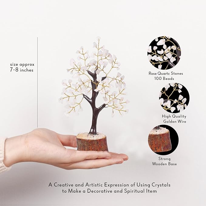 - Rose Quartz Money Tree - Our crystal quartz tree is one of the spiritual crystals item, which is made by our Indian artisans. The size of the healing crystal tree is approx. 7-8 inches that are strongly connected to the natural wooden base for providing strength. All the rose quartz crystals of the pink tree are connected with silver wire, which gives you a beautiful appearance.