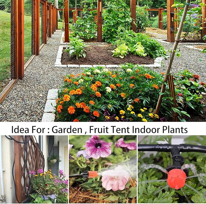 - The automatic irrigation kit is ideal for atomization, lawn and patio watering, roof cooling, agriculture, vegetable gardens, greenhouses, flower beds, and misting fog cooling around swimming pools.