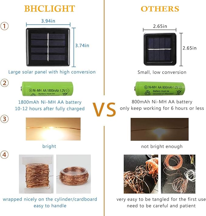 - Upgraded 2 Pack Super Bright Solar Christmas Lights: Cute shaped, powerful 1800mAh Capacity Battery, Super Bright Total 200 LED 80FT, Upgraded Larger LED Beads, IP65 Waterproof Performance. Durable Flexible Copper Wire, Quick Charging Technology, Cool White ⇋ Multicolor Switchable, Romantic Christmas Decorations. Solar string lights outdoor waterproof will be a great choice.
