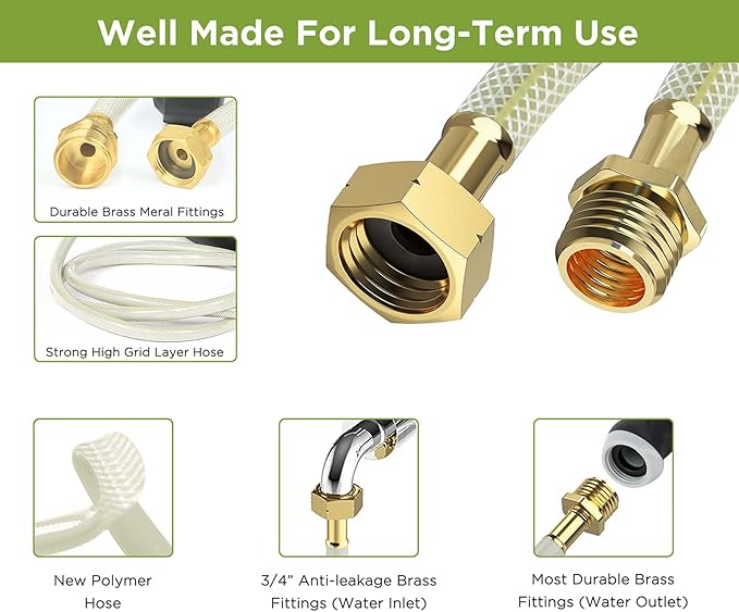 - Heavy Duty Retractable Hose: Our wall-mounted hose reels feature a durable, all-weather flexible hose that's leak-resistant and long-lasting. The 90ft 5/8 inch hose withstands 300 PSI pressure, with solid brass fittings and a thick waterproof ring to prevent rust and corrosion