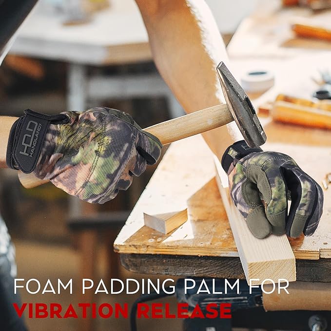 - Padded Palm Work Gloves: Padded working gloves for men with foam padding help reduce shock and vibration from hand tool use and provide all-day comfort.