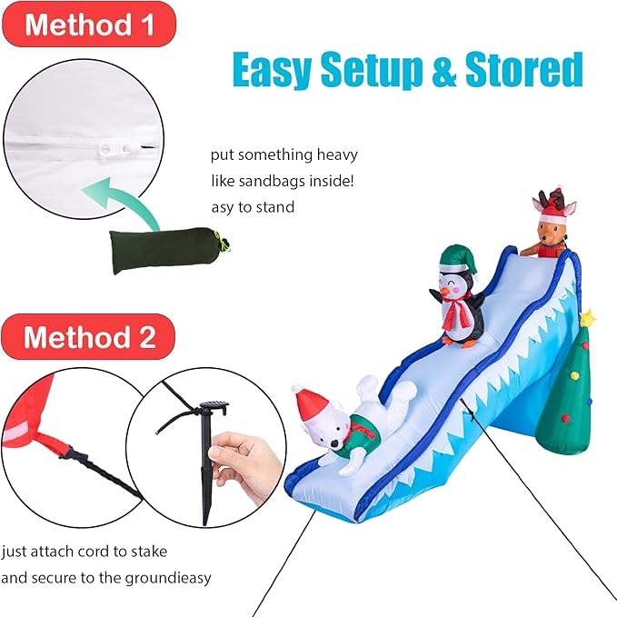 - Easy to Set Up & Storage: Just plug in, Christmas inflatable slide is easy to self inflating with powerful and quiet blowers. Inflate in a few seconds, then you will get a giant christmas blow up soon. When not use, you can deflate it easily and store for next use without occupying much spaces