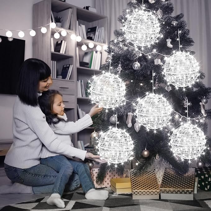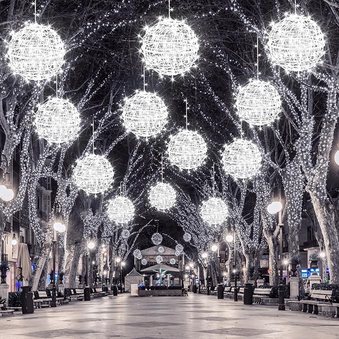 Christmas String Lights Outdoors,4 Pack 11.81" Sphere Lights,Ball Tree Garden Globe Lights for Home, Party, Christmas, Porch Patio,Wedding, Garden,Tree Decoration with Plug