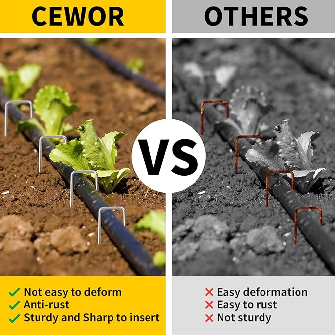 - PRODUCT COMPOSITION- CEWOR landscape staples include 200pcs 4 inches galvanized lawn stakes which are contained in a Sturdy and Firm box.