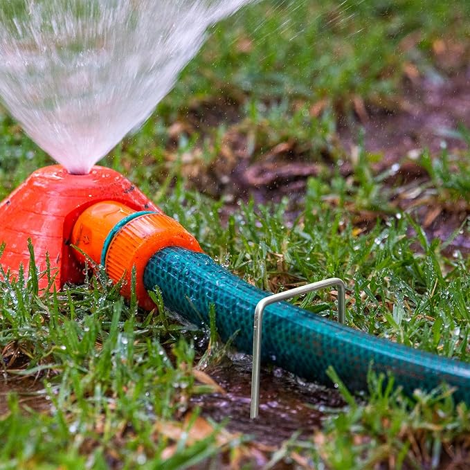- Pruduct APPEARANCE- Our landscape pins are made of heavy-duty galvanized steel. They are so strong to insert into the ground with adjustable width.