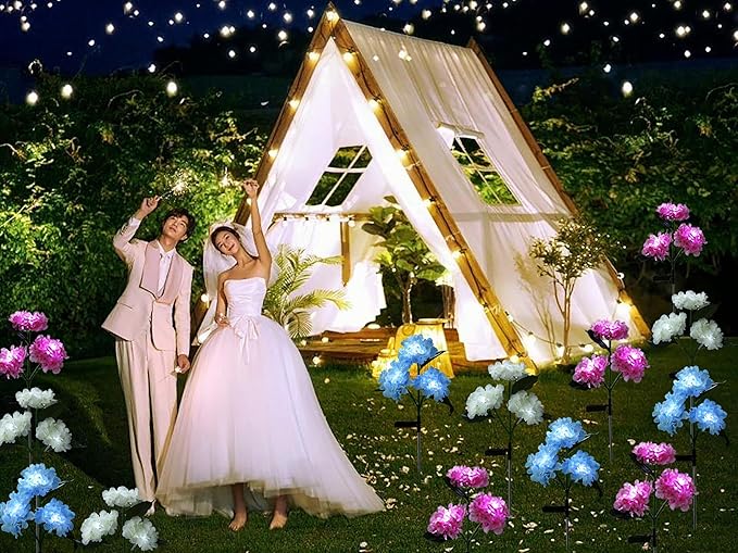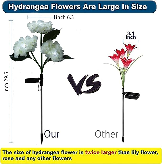 RAYLIDA Solar Lights Outdoor Decorative - 3 Pack Hydrangea Solar Garden Stake Lights, Multicolor, 10"L x 10"W x 27.5"H