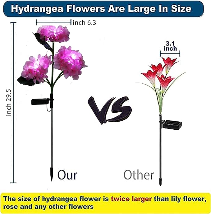Solar Lights Outdoor Decorative - 3 Pack Hydrangea Solar Garden Stake Lights Waterproof,Two Lightning Modes & Enlarged Solar Panel (Pink)