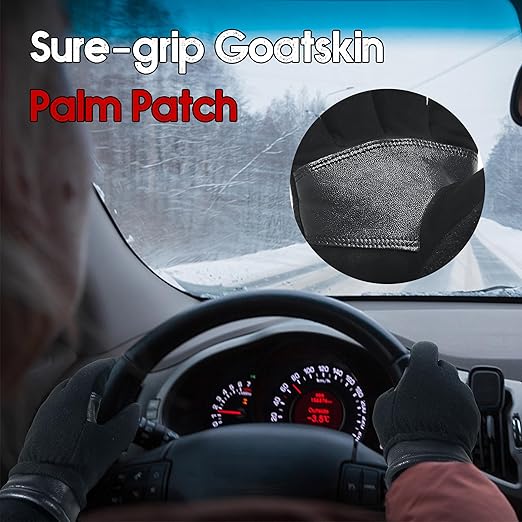 HANDLANDY Winter Gloves for Men Women, Thermal Gloves for Cold Weather Driving Cycling Ski Outdoor, Insulated Leather Work Gloves (Large, Black)