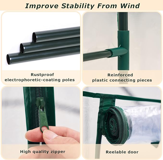 - Durable and Transparent: Manufactured from waterproof transparent plastic, our greenhouse allows sunlight to filter through while protecting your plants from the elements.