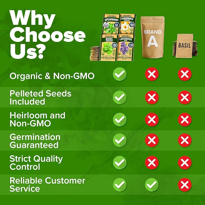- ORGANIC, NON GMO, HEIRLOOM, USA SEEDS - Our open-pollinated herb seeds are sustainably sourced in the USA, guaranteeing top quality without genetic alteration. Certified by the USDA. Experience excellence with our culinary herb seeds variety pack.