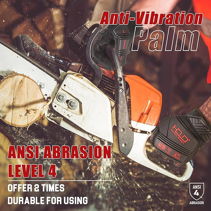 • SBR Palm for Effective Anti-Vibration:5mm SBR on the palm provides excellent anti-vibration properties, These anti vibration gloves effectively cut down on the vibrations caused by tools like a random orbit sander and chainsaw, providing relief for workers with nerve damage aggravated by extended tool use.