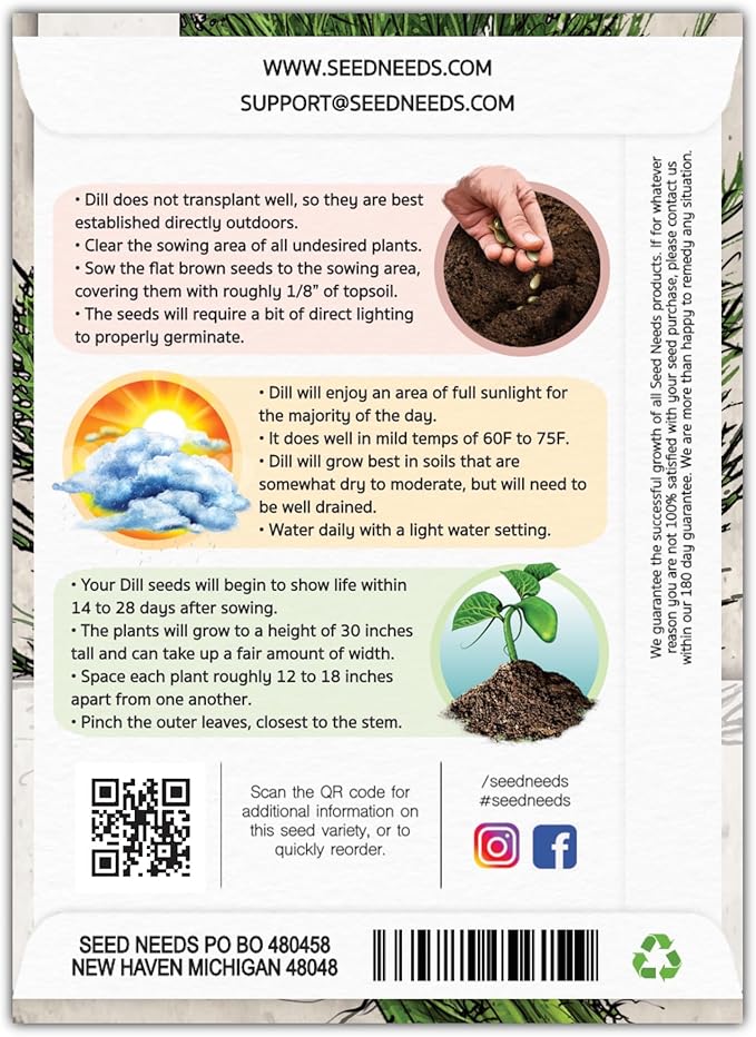 - Freshness - All Dill seeds are packaged in tear resistant and moisture resistant packaging. This keeps the seeds a whole lot fresher than the competitions selection!