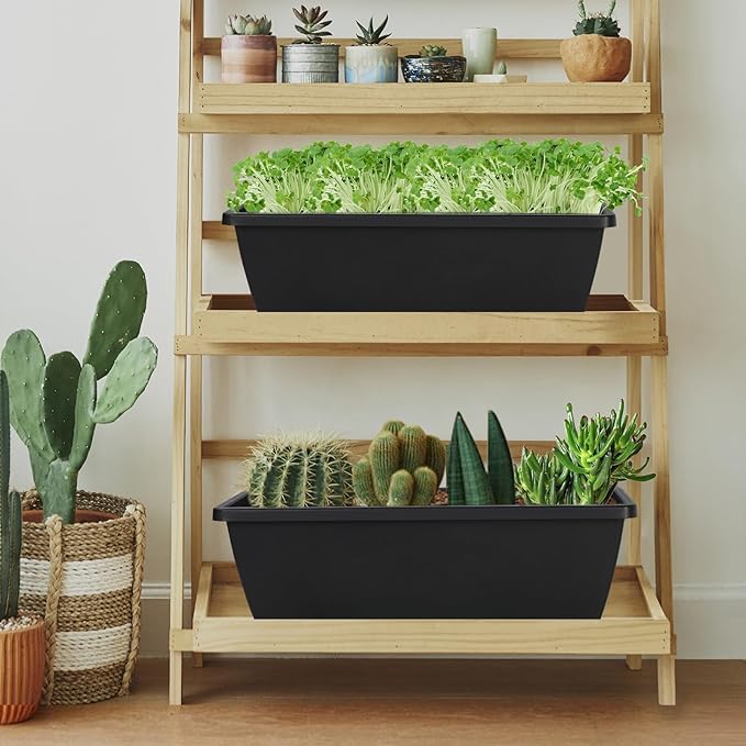 - 【Lightweight & Moderately Sized】This planters for outdoor plants set size: 16.6 × 6 × 7 inches, making it lightweight, compact, and easy to carry and store. This rectangular window planting box has a moderate size and is convenient to install on most windowsill, window and balcony, allowing you to easily plant vegetables or flowers.