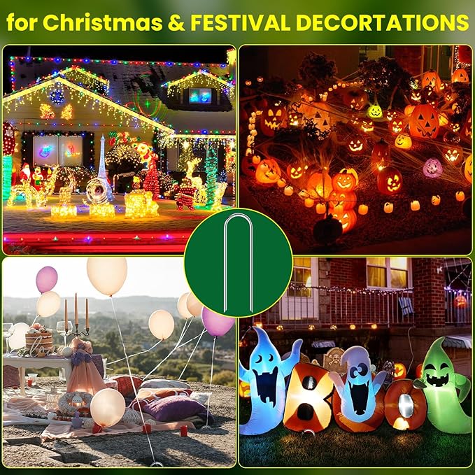 - MULTI PURPOSE : A very useful tool for outdoor activities. It can be used for Christmas decoration, Christmas lights stakes, yard, garden, lawn. Help you to fence in dogs, squirrels, rabbits. Help you to fix edging,plant roots, weed barrier landscape fabric or plastic, fences, hoses to keep your garden clean and tidy.