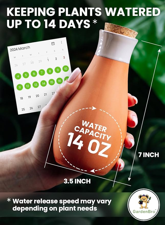 - 🌿 SOLUTION FOR TRAVELERS: Up to 2-Week Water Reservoir Ensures Plants Grow, Prevent Overwatering. Effortless, Reliable Self Watering Terracotta Pot Automatically Watering Your Plants When Away.
